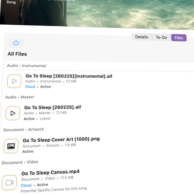StudioNotes 2.0 lets you attach audio files, agreements, artwork, and documents directly to your songs, recordings, releases and contacts.