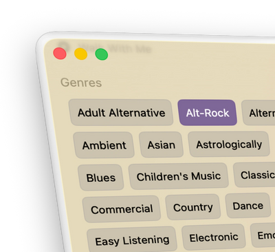 In the sidebar, all your configured genres and keywords appear as selectable tags.